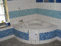 Přípojky el. energie a plynu, obecní vodovod, ohřev vody – el. boiler, odpad – kanalizace, rohová vana, sprchový kout. |