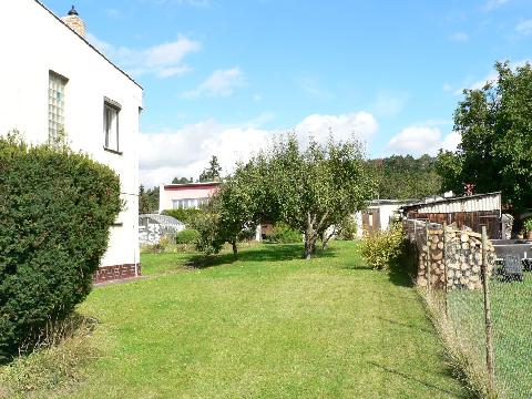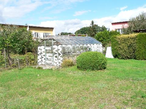 Za domem v horní části zahrady stojí samostatně zděný zahradní sklad s přístřeškem (cca 32 m2) a sklepem na ovoce a skleník (cca 15 m2). |